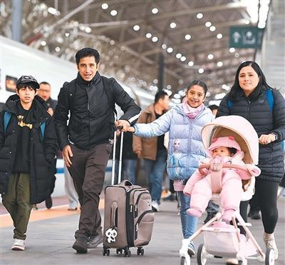 几名外国旅客从南京火车站出行。杨素平摄(人民视觉)