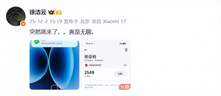 快科技12月2日消息,今日下午,小米集团董事长特别助理、战略市场部副总经理徐洁云在微博发文,分享自己手机短信界面的截图正规配资公司,并附文:“突然就来了,真是无聊。 ”